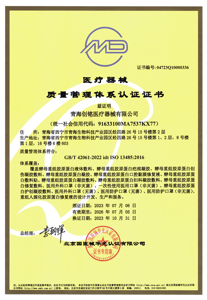 (创健健康)13485 质量管理体系认证