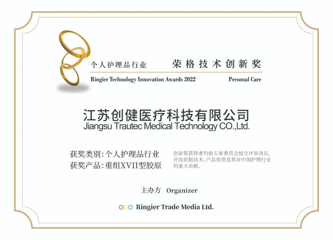 喜报|金奖!创健糖心vlog 重组XVII型小分子胶原蛋白再获殊荣
